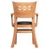 With a robust construction and a stunningly unique European design, the Leonardo wood arm chair is skillfully crafted to withstand heavy use in high traffic commercial environments but also to add visual appeal to your space. With its timeless elegance, this US made wood restaurant chair brings a majestic feel to any setting. Arm rests serve as additional comfort but also compliment the design.